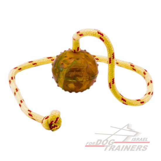 כדור אימון לכלבים על חבל עשוי גומי חלול - TT4 גודל קטן 5 ס"מ