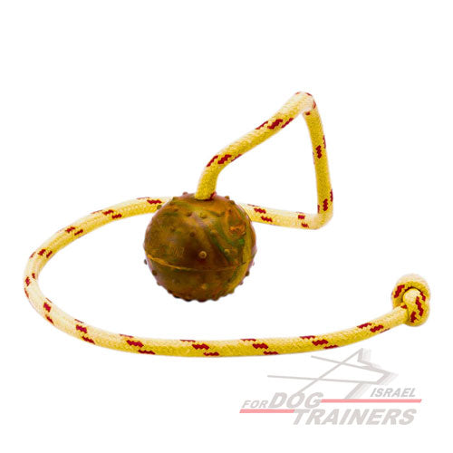 כדור אימון לכלבים על חבל עשוי גומי מוצק - TT1 גודל בינוני 6 ס"מ