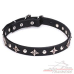 קולר לכלבים מעור - מקושט עם פרזול עמיד לחלודה