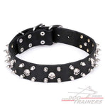 קולר לכלבים מעור - מקושט עם פרזול עמיד לחלודה