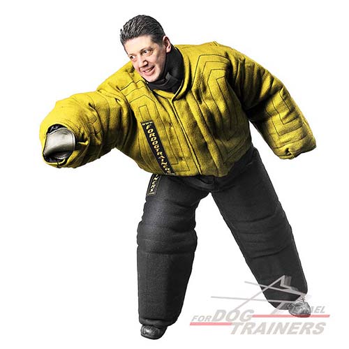 חליפת נשיכה צהובה להגנה מלאה על כל הגוף בעת אילוף כלבים