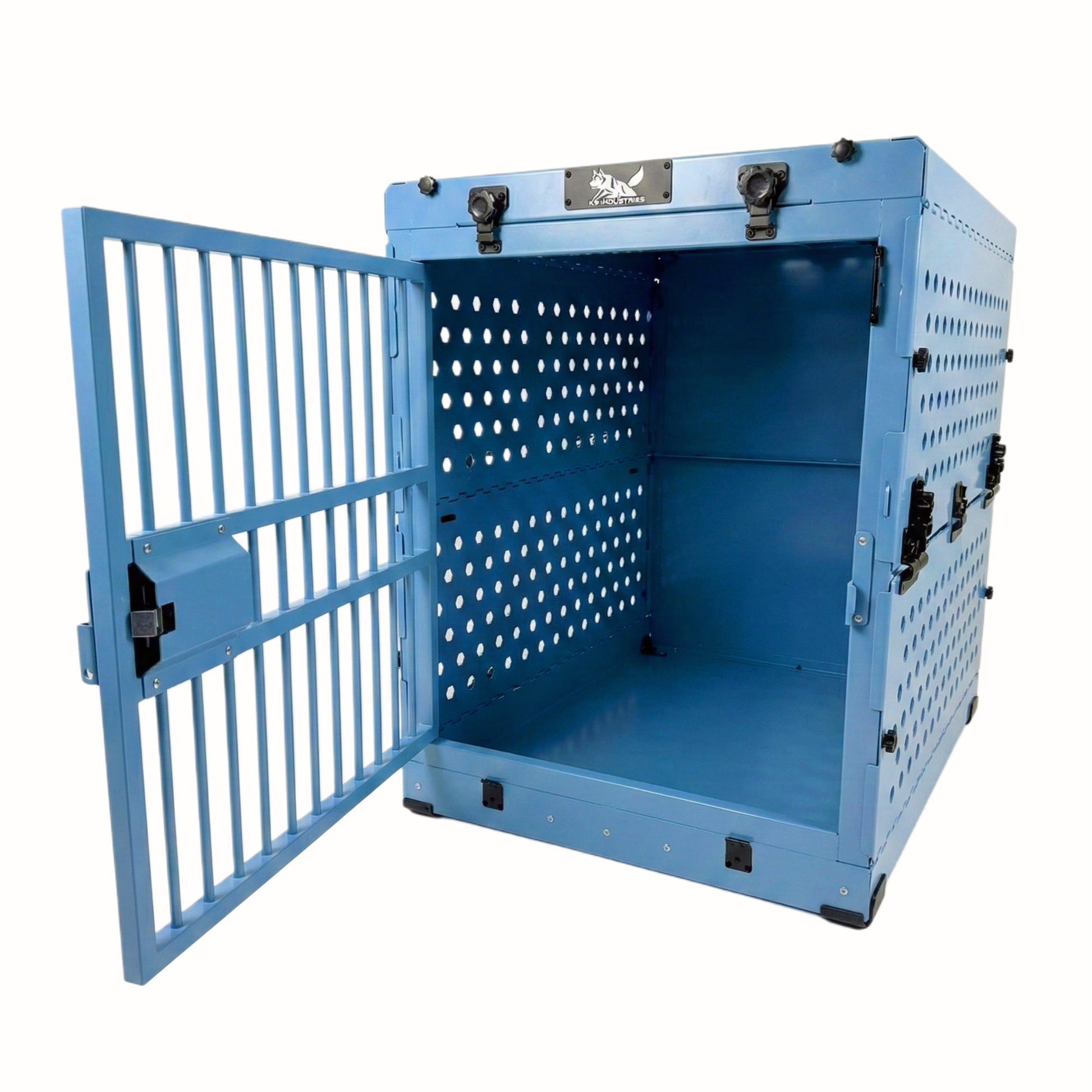 כלוב אלומיניום מחוזק לכלב עם חלק עליון מתרומם- ניתן לקיפול-102 ס"מ- כחול מטאלי