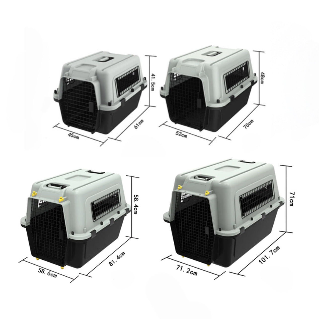 כלוב ההטסה איכותי ביותר בעל דלת פתיחה קדמית ומנגנון נעילה חיצוני לסגירה בטוחה ביותר. כלוב ההטסה הזה עומד בתקן הבינלאומי לכל שדות התעופה וחברות התעופה בעולם